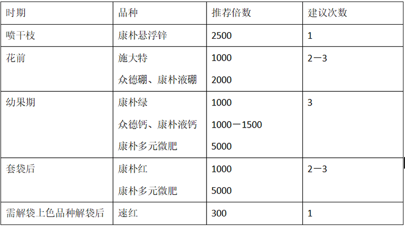 ?。?)推薦施肥套餐(根據(jù)目標(biāo)產(chǎn)量、地域、品種、樹勢(shì)、樹齡、地力等適當(dāng)調(diào)整)